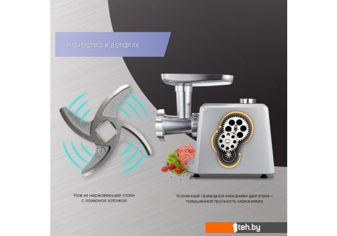 | Информация | ? Мясорубка ZMG-045 обладает мощностью 800 Вт и максимальной мощностью 2700 Вт, способна перерабатывать до 2.7 кг мяса в минуту, что позволяет быстро и качественно приготовить различные домашние блюда, такие как котлеты, пельмени, и голубцы. Раструб мясорубки имеет внутреннюю спиралевидную перфорацию, что гарантирует 100% выход продукта, а нож из нержавеющей стали с лазерной заточкой эффективно измельчает любое мясо. ? Функция защиты двигателя от перегрузок предотвращает повреждения при наматывании жил на шнек, а функция реверса позволяет прокрутить шнек в обратную сторону без разборки устройства. ? Шнековый блок увеличенного диаметра: 60 мм, а металлическое соединение двигателя со шнеком обеспечивает повышенную прочность механизма и устойчивость к большим нагрузкам. ?? Корпус мясорубки имеет современный дизайн и лоток для хранения насадок, а лоток для подачи мяса выполнен из стали. Кнопка фиксации рабочего блока облегчает процесс сборки и разборки прибора, а прорезиненные ножки обеспечивают надежное крепление на поверхности во время работы. ? В комплектацию входят 3 решетки из нержавеющей стали с отверстиями разного диаметра для различных видов рубки, а также насадки для приготовления колбасных изделий и кеббе. |