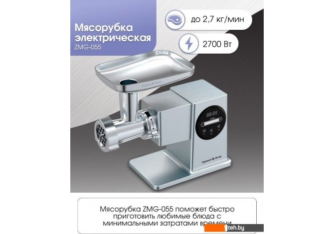 Фотографии, описание и технические характеристики модели мясорубки Zigmund & Shtain ZMG-055 взяты из открытых источников, официального сайта производителя или представительства Zigmund & Shtain в Республике Беларусь.