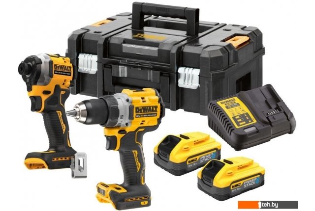 | Комплектация | - Дрель-шуруповерт DCD800 - 1 шт. - Шуруповерт DCF850 - 1 шт. - Аккумулятор 5 Ач - 2 шт. - Зарядное устройство DCB1102 - 1 шт. - Кейс TSTAK - 1 шт. |