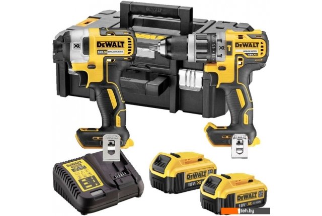 | Комплектация | - Профессиональный шуруповерт DeWalt DCD796 - Винтоверт DeWalt DCF887 - Универсальное зарядное устройство - 2 аккумулятор по 4.0 Ач - Кейс T-Stack - Инструкция - Гарантийный талон |