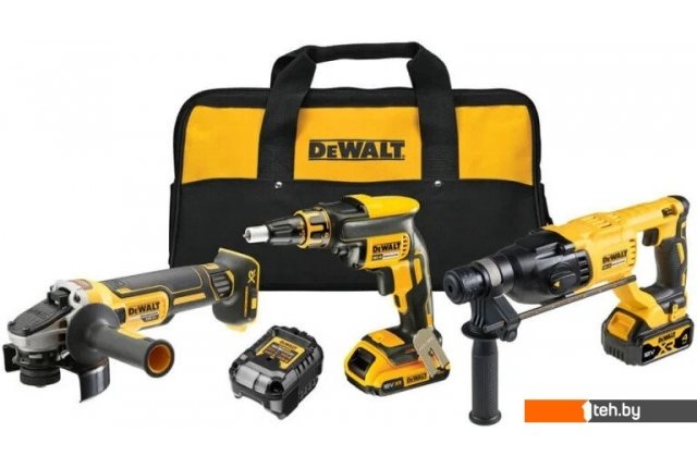 Фотографии, описание и технические характеристики модели DeWalt DCK308DM (перфоратор, шуруповерт, болгарка, 2 АКБ, сумка) взяты из открытых источников, официального сайта производителя или представительства DeWalt в Республике Беларусь.