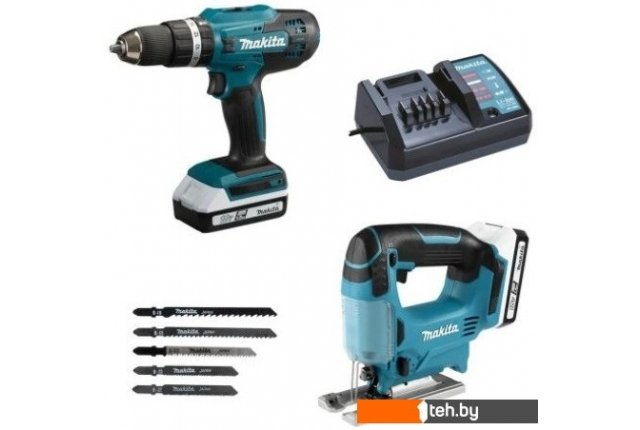 | Комплектация | - Дрель-шуруповерт аккумуляторная ударная Makita HP488 - Лобзик аккумуляторный Makita JV183 - Набор полотен для лобзика - Зарядное устройство - Аккумулятор 1.5 Ач - 2 шт  |