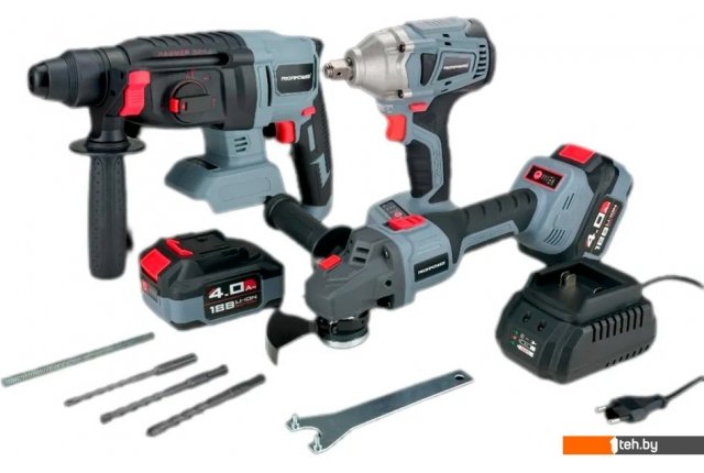 Фотографии, описание и технические характеристики модели Profipower MKDGA-18V (перфоратор, гайковерт, болгарка, 2 АКБ) взяты из открытых источников, официального сайта производителя или представительства Profipower в Республике Беларусь.