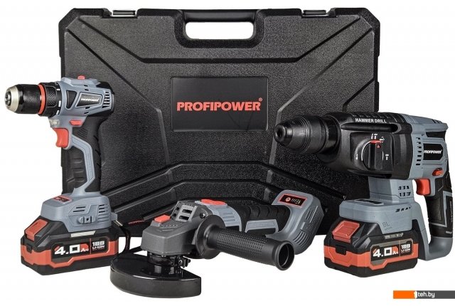 Фотографии, описание и технические характеристики модели Profipower ProfiSet-3E18 E0247 (шуруповерт, перфоратор, болгарка, 2 АКБ, кейс) взяты из открытых источников, официального сайта производителя или представительства Profipower в Республике Беларусь.