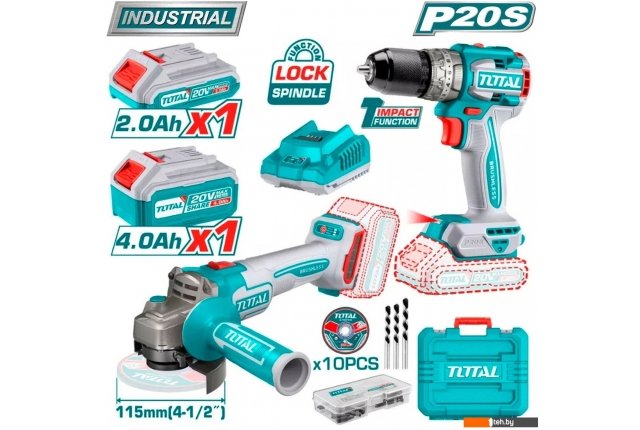 Фотографии, описание и технические характеристики модели Total TCKLI20273 (шуруповерт, болгарка, 2 АКБ, кейс) взяты из открытых источников, официального сайта производителя или представительства Total в Республике Беларусь.