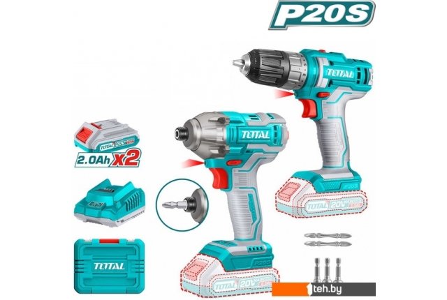 | Комплектация | - Дрель-шуруповерт TOTAL TDLI200528 - 1 шт. - Винтоверт TOTAL TIRLI2017 - 1 шт. - Аккумулятор 2 А*ч - 2 шт. - Зарядное устройство - 1 шт. - Биты - 2 шт. - Торцевые насадки - 3 шт. - Кейс - 1 шт. - Инструкция - Коробка |