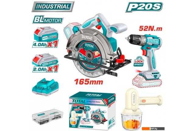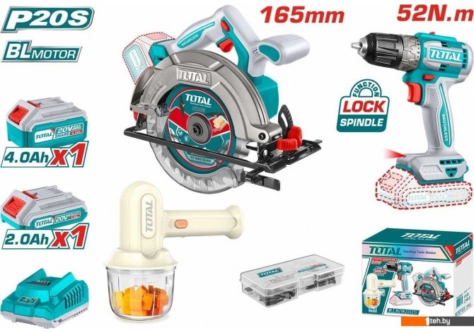 Фотографии, описание и технические характеристики модели Total TOSLI240583 (циркулярка, шуруповерт, миксер, 2 АКБ) взяты из открытых источников, официального сайта производителя или представительства Total в Республике Беларусь.