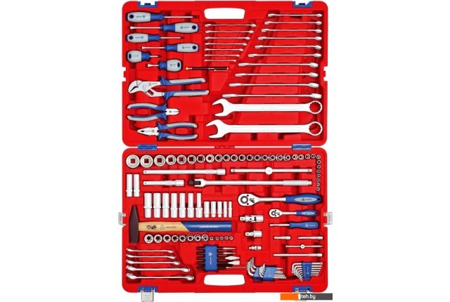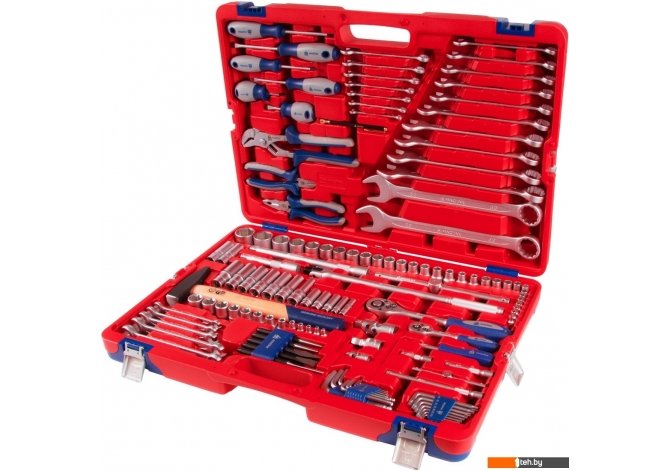 | Комплектация | Головки торцевые (30 шт.), глубокие торцевые (12 шт.), торцевые Е-тип (13 шт.), свечные (2 шт.) Торцевые головки 1/2? (8-22, 24, 27, 30, 32 мм), 1/4? (4, 4.5, 5, 5.5, 6, 7, 8, 9, 10, 11, 12, 13 мм) Глубокие торцевые головки 1/2? (10, 12, 13, 14, 15, 17, 19 мм), 1/4? (7, 8, 10, 12, 13 мм) Торцевые головки E-тип 1/2? (E10, E12, E14, E16, E18, E20, E22, E24), 1/4? (Е4, Е5, Е6, Е7, Е8) Удлинители 1/2? (125, 250 мм), 1/4? (50, 75, 150 мм), с шаром (50 мм) Кардан 1/2? (72 мм), 1/4? (40 мм) Ключи Ключи вороток (3 шт.), комбинированный (19 шт.), шестигранный (9 шт.), разрезной (5 шт.), звездочкой (Torx) (7 шт.) Воротки шарнирный (375 мм), скользящий (115, 250 мм) Размер ключа 8 мм, 10 мм, 11 мм, 12 мм, 13 мм, 14 мм, 15 мм, 17 мм, 16 мм, 19 мм, 22 мм, 24 мм, 1.5 мм, 2 мм, 2.5 мм, 3 мм, 4 мм, 5 мм, 6 мм, 27 мм, 30 мм, 32 мм, 21 мм |