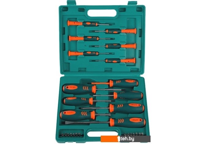 | Комплектация | Отвертки:SL: 5x75, 6x100, 8x150ммPH: 1x75, 2x100ммОтвертка для битОтвертка с изолированной ручкой 4x75мм6 часовых отверток:SL: 2x50, 2.5x50, 3x50ммPH: 000x50, 00x50, 0x50мм14 бит:Torx: 10-15-20-25-27-30-40Hex: 2-2.5-3.-4.5-5-5.5-6 |