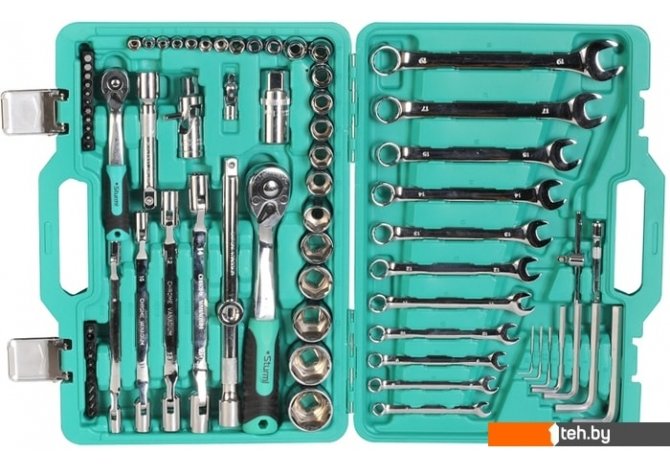 | Комплектация | - Шестигранные торцевые головки 1/4’’: 4. 5. 6. 7. 8. 9. 10. 11. 12мм–9 шт;- Шестигранные торцевые головки 1/2’’: 10. 11. 12. 13. 14. 1 5. 17. 19. 22. 24. 27. 30. 32мм–13 шт;- Двойные карданные ключи: 8x9. 10x11. 12x13. 14x15 мм–4 шт;- Трещотка с быстрым сбросом 1/4’’–1 шт;- Адаптер для бит–1 шт;- Карданный шарнир–1 шт;- Вороток Т- образный–1 шт;- Удлинитель 75 мм–1 шт;- Трещотка с быстрым сбросом–1шт;- Удлинитель 250 и 125 мм–1 шт;- Карданный шарнир–1 шт;- Свечная головка 21 мм–1шт;- Держатель для бит–1 шт;- Биты: TORX: 10.15. 20. 25. 30–5 шт; HEX: 2. 3. 4. 5. 6 мм–5шт; SL: 3. 4. 5.5. 7 мм–4 шт; PH: 0. 1. 2. 3–4 шт; PZ: 1. 2. 3–3 шт;- Шестигранные угловые ключи: 1.5. 2. 2.5. 5. 6. 8. 10 мм–7 шт;- Комбинированные ключи: 7. 8. 9. 10. 11. 12. 13. 14. 15. 17. 19 мм–8 шт; |