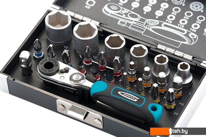 Комплектация | - 17 бит со шлицами PH1, PH2, PH3, PZ1, PZ2, PZ3, T10, T15, T20, T25, T27, T30, T40, H3, H4, H5 и H6 - Головки торцевые 1/4": 5, 6, 8, 10, 12, 13 |