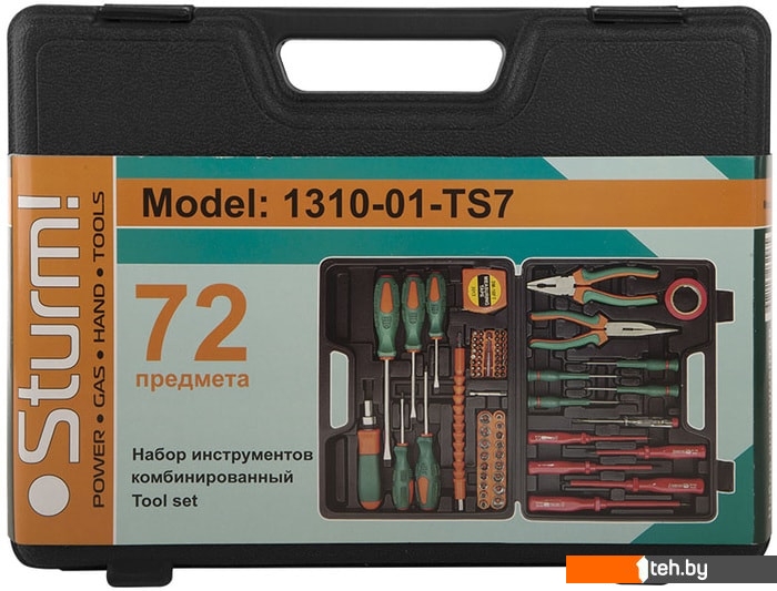 Если хотите купить набор инструментов Sturm 1310-01-TS7 (72 предмета) то следует уточнить все параметры и габариты модели перед покупкой. Представленые характеристики на сайте 1teh.by могут отличаться от действительных или указанных производителем. Описание, фото товара и технические характеристики представлены для справки.