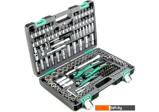 | Комплектация | - Ключ трещоточный 1/4.- Ключ трещоточный 3/8.- Ключ трещоточный 1/2.- Вороток на 1/4, 1/2.- Удлинитель 1/4: 50 мм, 100 мм.- Удлинитель 125 мм 3/8.- Удлинитель 125 мм 1/2.- Отвертка-держатель 1/4.- Кардан 1/4, 3/8, 1/2.- Головки торцевые свечные (с резиновой вставкой) 14 мм, 16 мм, 21 мм- Головки торцевые удлиненные 1/4: 4, 5, 6, 7, 8, 9, 10.- Головки торцевые удлиненные 3/8: 10, 11, 12, 13, 14, 15.- Головки торцевые удлиненные 1/2: 16, 17, 18, 19, 22.- Головки торцевые 1/4: 4, 4.5, 5, 5.5, 6, 7, 8, 9, 10, 11, 12, 13, 14.- Головки торцевые 1/4: Е Е4, Е5, Е6, Е7, Е8.- Головки торцевые 3/8: 10, 11, 12, 13, 14, 15, 16, 17, 18, 19.- Головки торцевые 3/8: Е Е10, Е11, Е12, Е14, Е16, Е18, Е20, Е24.- Головки торцевые 1/2" 10, 11, 12, 13, 14, 15, 16, 17, 18, 19, 20, 21, 22, 24, 27, 30, 32.- Переходник для битr 3/8 длина 28 мм.- Переходник для бит 1/2 длина 36 мм.- Биты с торцевыми головками 1/4" SL4, SL5.5, SL6.5, SL7, PH0, PH1, PH2, PZ0, PZ1, PZ2, H3, H4, H5, H6, Т8, Т9, Т10, Т15, Т20, Т25, Т27, Т30, ТT8, ТT9, ТT10, ТT15, ТT20, ТT25, ТT27, ТT30.- Биты 1/4: SL8, SL10, SL12, PH3, PH4, PZ3, PZ4, H7, H8, H10, H12, H14, T40, Т45, Т50, Т55, Т60, Т70, TT40, ТT45, ТT50, ТT55, ТT60, ТT70.- Комплект шестигранных ключей 1,3 мм, 1,5 мм, 2 мм, 2,5 мм, 3 мм, 4 мм, 5 мм. |