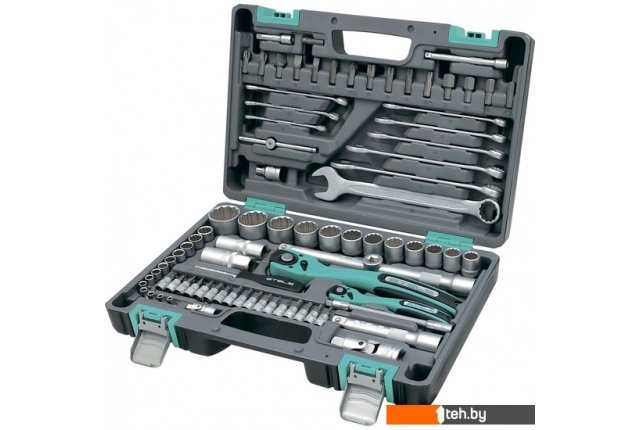 | Комплектация | Ключ трещоточный 1/2. Ключ трещоточный 1/4. Головки торцевые 1/2: 14, 15, 16, 17, 18, 19, 20, 22, 24, 27, 30, 32. Головки торцевые 1/4: 4, 4.5, 5, 5.5, 6, 7, 8, 9, 10, 11, 12, 13, 14. Удлинитель гибкий отверточная рукоятка 1/4. Ключи комбинированные: 8, 10, 11, 12, 13, 14, 17, 19, 22. Кардан 1/2. Кардан 1/4. Удлинитель 1/2: 125 мм, 250 мм. Удлинитель 1/4: 50 мм, 100 мм. Адаптер для бит 1/4 -длина 25 мм. Головки свечные 1/2: 16 мм и 21 мм. Вороток Т-образный, 1/2, 1/4. Биты с торцевой головкой 1/4 -длина 32 мм: Н - 3, 4, 5, 6, T8, T10, T15, T20, T25, T30, SL 4, 5.5, 7, PH1, PH2, PZ1, PZ2. Адаптер 1/2" на 3/8. Держатель для бит 1/2" на 5/16. Биты 5/16: T40, Т45, Т50, Т55, SL8, SL10, SL12, PH3, PH4, PZ3, PZ4, Н - 8, 10, 12, 14. Отвертка держатель для бит. |
