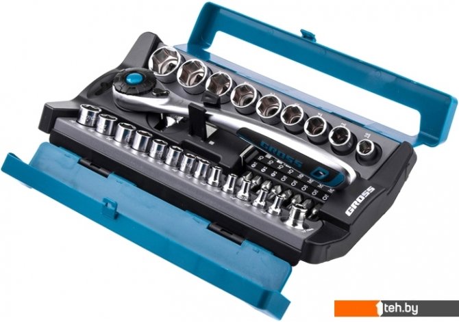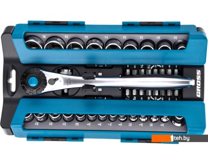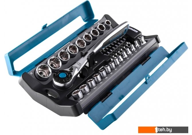 | Комплектация | Ключ трещоточный 1/2" Переходник 1/2" – 1/4" Адаптер для бит 5/16" - 1/2" Головки торцевые 1/4": 4, 4,5, 5, 5,5, 6, 7, 8, 9, 10, 11, 12, 13, 14 мм Головки торцевые 1/2": 10, 12, 14, 15, 17, 18, 19, 22, 24 мм, Биты 5/16": PH1, PH2, PZ1, PZ2, SL4, SL5.5, SL7, H3, H4, H5, H6, T10, Т15, Т20, Т25, Т30. Футляр. Упаковка. |
