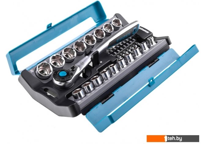 | Комплектация | Ключ трещоточный 1/2" Переходник 1/2" – 1/4" Адаптер для бит 5/16" - 1/2" Головки торцевые 1/2": 8, 9,10, 11, 12, 13, 14, 15, 16, 17, 18, 19, 20, 21, 22, 23, 24 мм Биты 5/16": PH1, PH2, PZ1, PZ2, SL4, SL5.5, SL7, H3, H4, H5, H6, T10, Т15, Т20, Т25, Т30. Панель. Упаковка. |