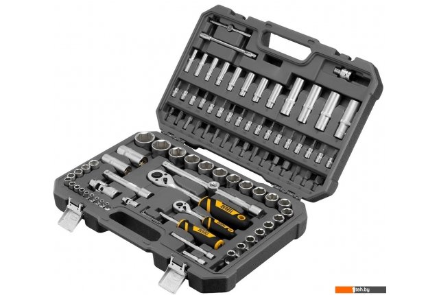 | Комплектация | Ключ-трещотка 1/2", 1/4" 2 шт Вороток Т-образный 1/4": 115 мм 1 шт Кардан 1/2", 1/4" 2 шт Удлинители 1/2": 125, 250 мм 2 шт Удлинители 1/4": 50, 100 мм 2 шт 3-сторонний адаптер 3/8"-1/2" 1 шт Переходник для бит: 1/2"-5/16" 1 шт Ключи имбусовые 3 шт Отвертка-держатель 2К-рукоятка 1/4": 150 мм 1 шт Головки торцевые свечные 1/2" 2 шт Головки торцевые 1/2" 17 шт Головки торцевые удлиненные 1/2" 5 шт Головки торцевые 1/4" 13 шт Головки торцевые удлиненные 1/4" 8 шт Биты-вставки 5/16", 30мм 16 шт Биты-вставки 1/4" 11 шт Пластиковый кейс 1 шт |