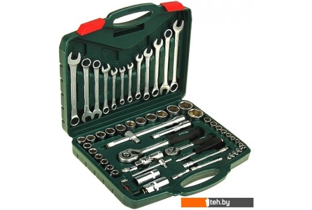 | Комплектация | - 6-гранные ключи — 3 шт. (1.5; 2; 2.5 мм).- Комбинированные ключи — 12 шт. (8, 9, 10, 11, 12, 13, 14, 15, 16, 17, 18, 19 мм).Инструменты с посадочным размером 1/4?:- торцевые головки — 13 шт. (4; 4.5; 5; 5.5; 6; 7; 8; 9; 10; 11; 12; 13; 14 мм);- вороток для бит;- удлинитель гибкий;- удлинители — 2 шт. (50, 100 мм);- вороток с трещоткой для головок;- отвёртка-держатель для головок;- карданный механизм;- адаптер для воротка.Инструменты с посадочным размером 1/2?:- торцевые головки— 18 шт. (10, 11, 12, 13, 14, 15, 16, 17, 18, 19, 20, 21, 22, 23, 24, 27, 30, 32 мм);- свечные головки — 2 шт. (16, 21 мм);- вороток с трещоткой для головок;- удлинители — 2 шт. (125, 250 мм);- адаптер для воротка;- карданный механизм. |