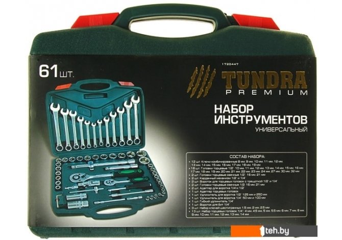 Если хотите купить набор инструментов Tundra 1720447 (61 предмет) то следует уточнить все параметры и габариты модели перед покупкой. Представленые характеристики на сайте 1teh.by могут отличаться от действительных или указанных производителем. Описание, фото товара и технические характеристики представлены для справки.