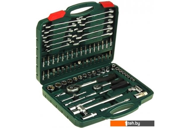 | Комплектация | - Ключи комбинированные, 11 шт.: 8, 10, 11, 12, 13, 14, 15, 16, 17, 18, 19 мм.- Биты (1/4?, 18 шт.): SL4; SL5,5; SL6,5; PH1; PH2; PZ1; PZ2; H3; H4; H5; H6; T8; T10; T15; T20; T25; T30; T40.- Биты, 15 шт: SL8, SL10, SL12; PH3, PH4; PZ3; PZ4; H8, H10, H12, H14; T40; T45; T50; T55.- Торцевые головки (1/4?, 7 шт.): 7, 8, 9, 10, 11, 12, 13 мм.- Торцевые головки (1/2?, 12 шт.): 8, 10, 12, 13, 14, 15, 16, 17, 18, 19, 22, 24 мм.- Вороток для бит 1/2?.- Вороток для торцевых головок с трещоткой, 2 шт.: 1/2?, 1/4? .- Карданный переходник, 2 шт.: 1/2?, 1/4?.- Адаптер для воротка, 2 шт.: 1/2?, 1/4?.- Торцевые головки свечные (1/2?, 2 шт.).: 16, 21 мм.- Удлинитель для воротка гибкий 1/4?.- Удлинитель для воротка (1/2?, 2 шт.).: 125, 250 мм.- Удлинитель для воротка (1/4?, 2 шт.).: 50, 100 мм.- Адаптер для бит. |