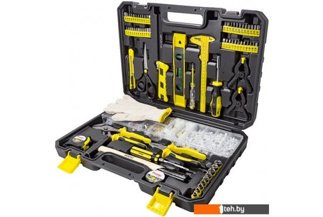 | Комплектация | "1/4» Посадочный квадрат : 9шт. - 1/4» Головки: 5,6,7,8,9,10,11,12,13мм 1шт. - Рукоятка битодержатель 75мм 1шт. - Ножницы универсальные 175мм 48шт - Биты 25мм: SL 4, SL 5.5, SL 6.5 mm SP4, SP6 Y1,Y2,Y3,Y4 C1 S0,S1,S2 PH0,PH1,PH2,PH3, PZ1,PZ2,PZ3, H2, H2.5,H3,H4,H5,H5.5,H6,H7,H8, H10mm T8,T10,T15,T20,T25,T30,T40 TT8,TT10,TT15,TT20,TT25,TT27,TT30,TT40, TT45,TT50 AD 1шт. - Изолента ПВХ 3м 1шт. - Рулетка 3м 1шт. - Ножовка (250мм полотно) 1шт. - Отвертка переставная 2 в 1: SL6, PH2 1шт. - Уровень 225мм 1шт. - Нож универсальный 9мм 1шт. - Отвертка индикаторная 1шт. - Молоток 200гр. 1шт. - Пассатижи переставные 200мм 1шт. - Пассатижи комбинированные 150мм 2шт. - Струбцины пружинные 75мм 1шт. - Пластиковый штангельциркуль 150мм 801шт. - Набор крепежа (саморезы, дюбели и пр.) 325шт. - Набор крепежа для электрики (кабельные крюки, стяжки, клеммы и пр.) 1шт. - Пара рабочих перчаток 1шт. - Кейс |