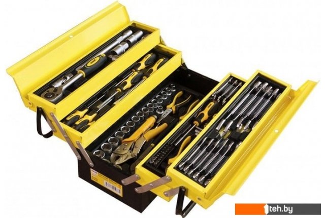| Комплектация | Оснастка: головки, насадки-биты, удлинители (2 шт.: 125, 250 мм), кардан (1 шт.), держатель (1 шт.)Головки: торцевые шестигранные, свечные (2 шт.: 16, 21 мм)Торцевые шестигранные головки: 1/2" (20 шт.: 8-24, 27, 30, 32 мм)Насадки-биты: шестигранные (Hex) (7 шт.: 2, 3, 4, 5, 6, 8, 10 мм ), звездочкой с отверстием (Torx) (13 шт.: T10H, 2xT15H, 2xT20H, 2xT25H, T27H, 2xT30H, T40H, T45H)Ключи: комбинированный (17 шт.: 6-22 мм ), шестигранный (9 шт.: 1.5, 2, 2.5, 3, 4, 5, 6, 8, 10 мм)Воротки: T-образный (1 шт.: 255 мм), шарнирный (1 шт., 430 мм)Инструменты в наборе: пассатижи (1 шт.: 175 мм), длинногубцы (1 шт.: 150 мм), бокорезы (1 шт.: 160 мм)Трещотка: 1/2" (1 шт.)Отвертки: шлицевая (SL) (4 шт.: SL.3 x75, SL.4 x100, SL.6 x100, SL.8 x150 мм), крестовая (PH) (2 шт.: PH.1 x80, PH.2 x100)Клещи: переставные (1 шт.: 250 мм)Доп. комплектация: захват гейферный (1 шт.: 250 мм), кейс |