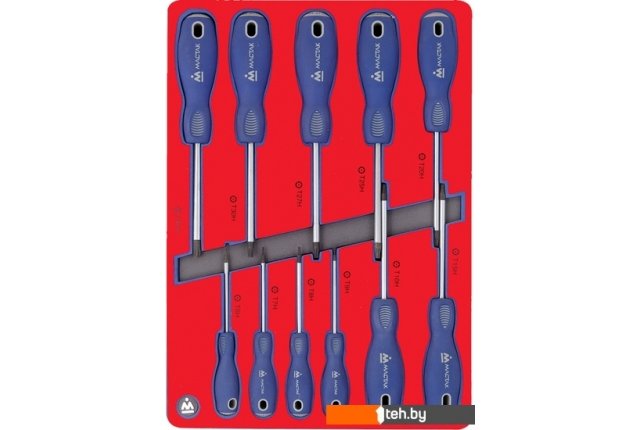| Комплектация | • Отвертки TORX с двухкомпонентной эргономичной ручкой. Размеры: Т6х75, Т7х75, Т8х75, Т9х75, Т10х100, Т15х100, Т20х100, Т25х100, Т27х100, Т30х100, Т40х100. |