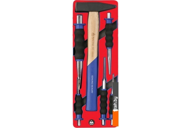 | Комплектация | • Молоток с деревянной ручкой 500 г. • Зубила. Размеры: 10х140, 24х220 мм. • Выколотки. Размеры: 3х150, 5х200 мм. • Кернер 4х185 мм. |
