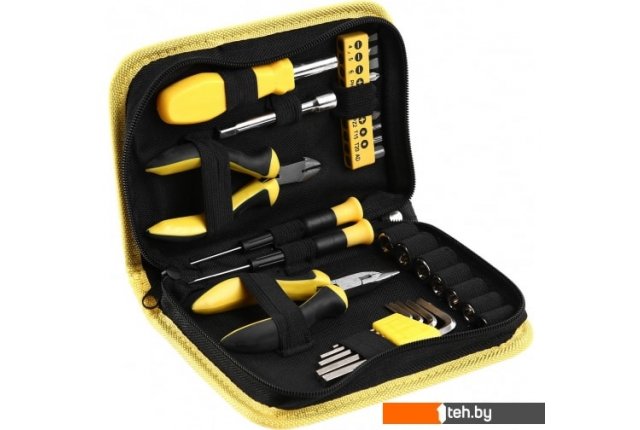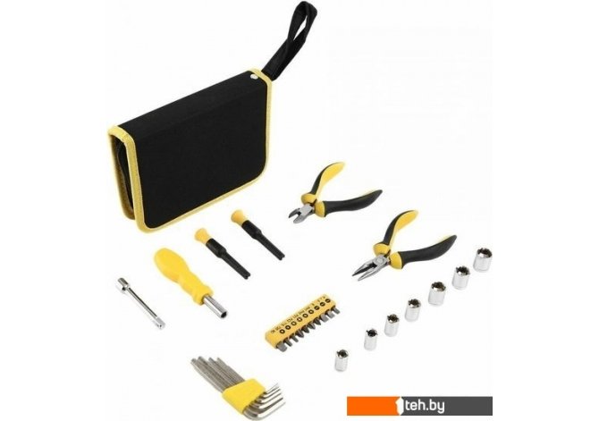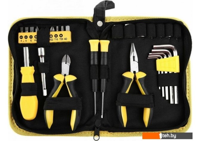 | Комплектация | - Шестигранный ключ - 5 шт.; - Отвертки - 2 шт.; - Отвёртка с набором бит (10 шт.); - Адаптер-удлинитель; - Головки - 7 шт; - Бокорезы; - Тонконосы; - Нейлоновая сумка. |