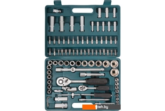 | Комплектация | Инструменты в наборе трещотка (2 шт.), отвертка (1 шт.) Трещотка 1/2? (265 мм), 1/4? (150 мм) Доп. комплектация кейс (пластиковый) Оснастка Оснастка головки (60 шт.), насадки-биты (17 шт.), удлинители (4 шт.), кардан (2 шт.) Головки торцевые (31 шт.), свечные (2 шт.), головки со вставкой (15 шт.), удлиненные шестигранные (12 шт.) Торцевые головки 1/2? (10, 11, 12, 13, 14, 15, 16, 17, 18, 19, 20-24, 27, 30, 32 мм), 1/4? (4, 4.5, 5, 5.5, 6, 7, 8, 9, 10, 11, 12, 13, 14 мм) Головки со вставкой шлицевые (SL) (SL8, SL10, SL12), крестовые (PH) (PН3, PH4), крестовые с насечками (PZ) (PZ3, PZ4), шестигранные (Hex) (H8, H10, H12, H14), звездочкой (Torx) (T40, T45, T50, T55) Насадки-биты шлицевые (SL) (SL4, SL5.5, SL7), крестовые (PH) (PH1, PH2), крестовые с насечками (PZ) (PZ1, PZ2), шестигранные (Hex) (H3, H4, H5, H6), звездочкой (Torx) (T8, T10, T15, T20, T25, T30) Удлинители 1/2? (125, 250 мм), 1/4? (50, 100 мм), гибкий удлинитель (150 мм) Кардан 1/2?, 1/4? |