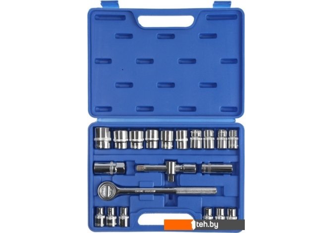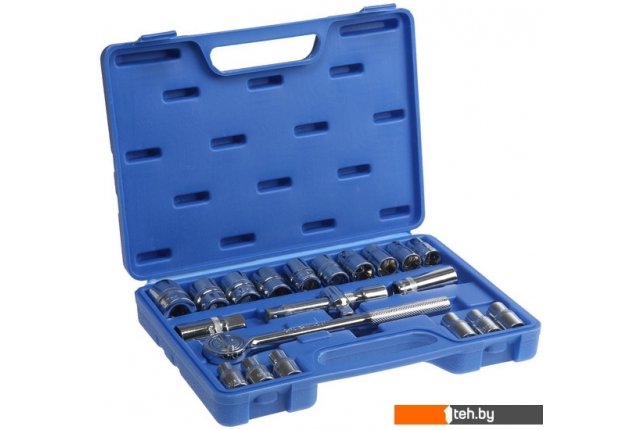 | Комплектация | вороток с трещоткой: 250 мм вороток: удлинитель для воротка 125 мм + адаптер для воротка 3/8" х 1/2 " торцевые головки, 16 шт.: 8, 9, 10, 11, 12, 13, 14, 16, 17, 18, 19, 20, 22, 23, 24, 27 мм свечные головки, 2 шт.: 16, 21 мм |