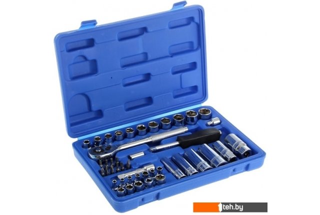 | Комплектация | - Вороток для торцевых головок с трещоткой 1/4".- Вороток для торцевых головок и бит 3/8".- Удлинитель для воротка 3/8" 75 мм.- Адаптер для бит 1/4".- Адаптер 1/4" x 3/8".- Набор бит, 10 шт.- Набор торцевых головок 1/4", 12 шт.: 4, 4.5, 5, 5.5, 6, 7, 8, 9, 10, 11, 12, 13 мм.- Набор торцевых головок 3/8", 11 шт.: 8, 10, 11, 12, 13, 14, 15, 16, 17, 18, 19 мм.- Набор торцевых головок удлинённых 3/8", 4 шт.: 12, 13, 17, 19 мм.- Головка торцевая свечная 3/8", 2 шт.: 16, 21 мм. |