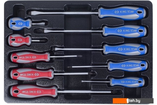 | Комплектация | - Отвертки крестовые Phillips KING TONY (1421)Размеры: NO.1x80, NO.2x38, NO.2x100, NO.3x150- Отвертки шлицевые SlottedKINGTONY (1422)Размеры: 3x75, 4x100, 5.5x125, 6.5x38, 6.5x150, 8x175 |