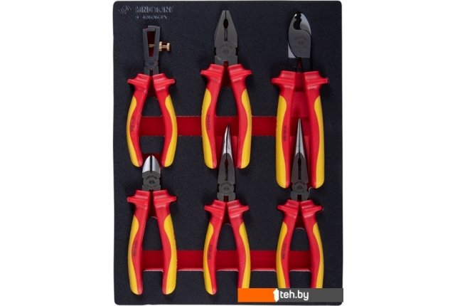 | Комплектация | – Бокорезы диэлектрические, 167 мм (6216-06A) – Пассатижи тонконосые диэлектрические, 210 мм (6318-08A) – Стриппер диэлектрический, 160 мм (6716-06A) – Пассатижи комбинированные диэлектрические, 185 мм (6116-07A) – Пассатижи тонконосые, загнутые, диэлектрические 200 мм (6336-08A) – Кабелерез диэлектрический, 214 мм (6146-08A) |
