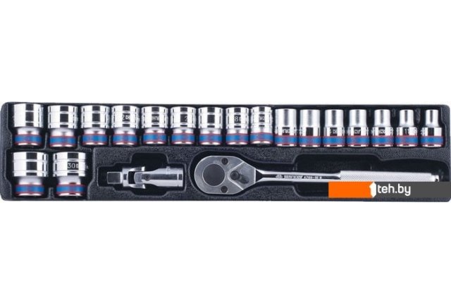 | Комплектация | - Головка торцевая стандартная шестигранная 1/2", KING TONY серии 4335M: 10, 11, 12, 13, 14, 15, 16, 17, 18, 19, 20, 21, 22, 23, 24, 27, 30, 32;- Кардан 1/2" KING TONY 4791R;- Трещотка 1/2", 250 мм, 32 зубца, флажковая KING TONY 4768-10F. |
