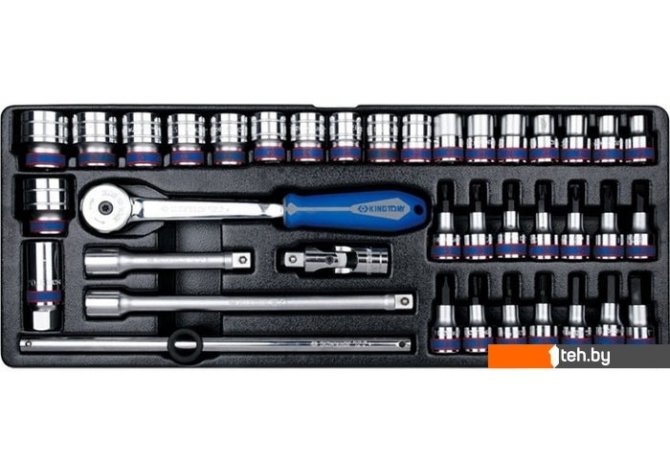 | Комплектация | - Отвертки крестовые PHILLIPS KING TONY серии 1421: No.1 x 80, No.2 x 38, No.3 x 150- Отвертки шлицевые SLOTTED KING TONY серии 1422: 6.5 x 3 мм- Насадки (биты) торцевые 1/2", PHILLIPS KING TONY серии 4021: No.2 , No.3- Насадки (биты) торцевые 1/2", SLOTTED KING TONY серии 4022: 8, 10 мм- Насадки (биты) торцевые 1/2", TORX KING TONY серии 4023: T25, T27, T30, T40- Насадки (биты) торцевые 1/2", HEX KING TONY серии 4025: 4, 5, 6, 8, 10, 12- Удлинители 1/2" KING TONY серии 4251: 5", 10"- Торцевые шестигранные головки 1/2" KING TONY серии 4335M: 10, 11, 12, 13, 14, 15, 16, 17, 18, 19, 20, 21, 22, 23, 24, 27, 30, 32 мм- Вороток скользящий 1/2", 300 мм, KING TONY 4572-12- Головка свечная шестигранная 1/2", 21 мм, резиновый фиксатор KING TONY 463521R- Трещотка 1/2" длина 250 мм KING TONY 4768-10F- Кардан 1/2" KING TONY 4791R- Ключ разводной 200 мм KING TONY 3611-08R- Пассатижи комбинированные 180 мм KING TONY 6111-07- Пассатижи тонконосые 160 мм KING TONY 6311-06- Захват переставной 250 мм KING TONY 6511-10A- Шестигранники Г-образные, с шаровым окончанием KING TONY серии 1120M: 1.5, 2, 2.5, 3, 4, 5, 6, 8, 10 мм- Ключи рожковые KING TONY серии 1900: 6 x 7, 8 x 10, 11 x 13, 12 x 13, 17 x 19, 22 x 24 мм- Ключи накидные KING TONY серии 1970: 8 x 9, 10 x 11, 12 x 13, 14 x 15, 16 x 17, 18 x 19 мм |