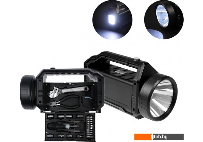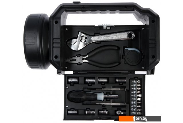 | Комплектация | Биты, 9 шт.: PH1-2, PZ1-2, SL5-6, T10-15-20; Держатель для бит, 1 шт.; Торцевые головки, 8 шт.: 5-6-7-8-9-10-11-22 мм; Адаптер для торцевых головок, 1 шт.; Отвертки для точных работ, 2 шт.: PH00, SL2; Ключ разводной, 150 мм; Плоскогубцы, 130 мм; Рулетка, 1 м. |