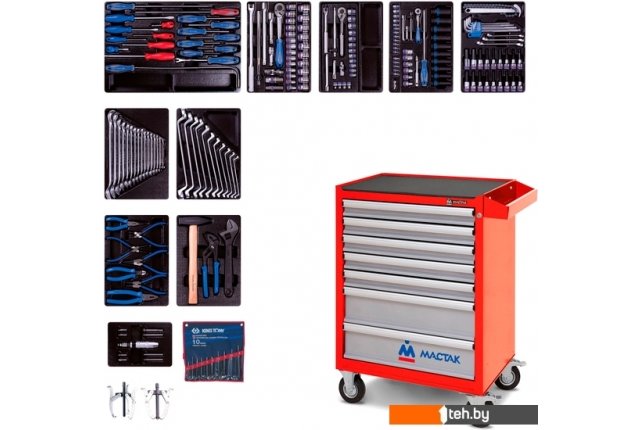 | Комплектация | Модуль 1 Набор отверток, съемник клипс и гибкий магнит, 19 предметов 9-31919MR Модуль 2 Набор торцевых головок 1/2" с принадлежностями, 33 предмета 9-4333MR03 Набор торцевых головок 3/8" с принадлежностями, 23 предмета 9-3523MR Модуль 3 Набор ударных головок 1/2" и торцевых головок 1/4" с принадлежностями, 40 предметов 9-7540MR Набор торцевых насадок, шестигранники Г-образные и разрезные ключи, 31 предметов 9-90131MR Модуль 4 Набор накидных ключей, 11 предметов 9-1711MR Набор комбинированных ключей, 16 предметов 9-1216MR03 Модуль 5 Набор переставные клещи, разводной ключ и молоток, 3 предмета 9-90103PP02 Набор съемников стопорных колец, пассатижей и бокорезов, 7 предметов 9-40207GP Модуль 6 Набор отвертка ударная 5/16" с принадлежностями, 6 предметов 9-4128FR Вспомогательный инструмент Набор выколоток, бородков, кернеров, 10 предметов 1010PR Съемник подшипников 2-х захватный 100 мм 7962-04 Съемник подшипников 3-х захватный 100 мм 7963-04 Тележка инструментальная 7 выдвижных полок, цвет синий Количество предметов: 204 Количество ложементов: 10 Размеры тележки в сборе: 460 х 680 х 955 мм Упаковка: картон Вес: 86,7 кг |