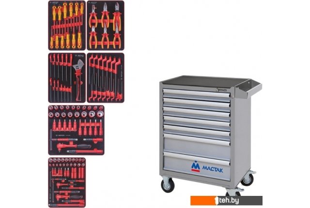 | Информация | Модуль 1 Набор отверток диэлектрических 9-30612MRV 12 предметов Набор пассатижей и бокорезов диэлектрических 9-40606GPV 6 предметов Модуль 2 Набор рожковых диэлектрических ключей 8-24 мм 9-901VE14MRV 14 предметов Набор накидных диэлектрических ключей 7-24 мм 9-12FVG15MRV 15 предметов Модуль 3 Набор торцевых диэлектрических головок с принадлежностями 1/2", шестигранные, 8-32 мм 9-45VE02MRV 32 предмета Модуль 4 Набор торцевых диэлектрических головок с принадлежностями 1/4", 3/8", шестигранные, 5-19 мм 9-55VE01MRV 38 предметов Тележка инструментальная - 7 выдвижных полок, цвет серый 521-07581MG |