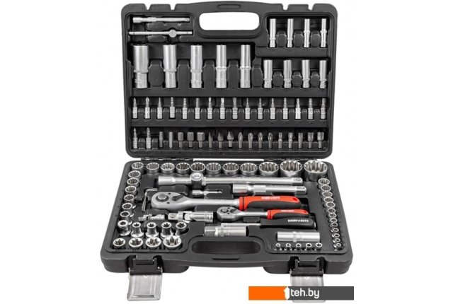 | Комплектация | Инструменты в наборе трещотка, ключ шестигранный (3 шт.) Трещотка 1/2?, 1/4? Отвертки отвертка-вороток Доп. комплектация кейс Оснастка Оснастка головки, насадки-биты, удлинители, кардан Головки торцевые шестигранные, глубокие торцевые, торцевые Е-тип, торцевые двенадцатигранные Удлинители 1/2?, 1/4? Кардан 1/2?, 1/4? |