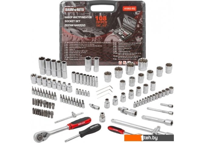 Фотографии, описание и технические характеристики модели набора BaumAuto BM-41082-5Q (108 предметов) взяты из открытых источников, официального сайта производителя или представительства BaumAuto в Республике Беларусь.