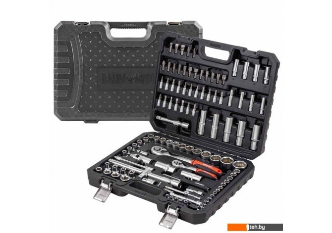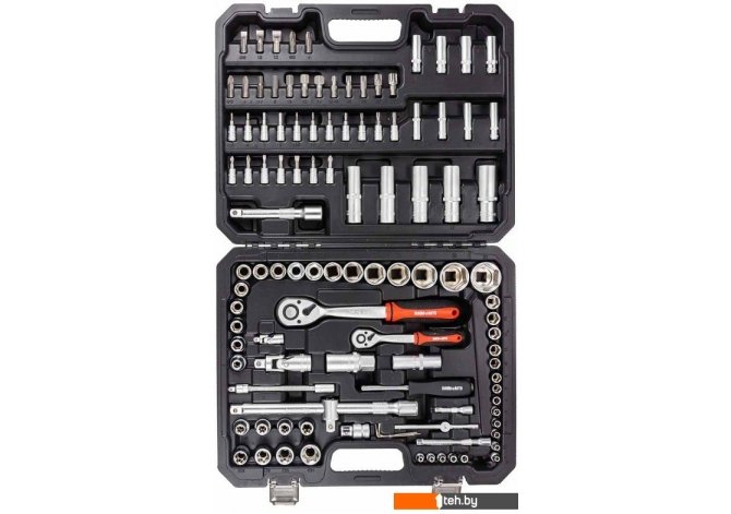 | Комплектация | трещотка (2 шт.), ключ гаечный (4 шт.), рукоятка (1 шт.), кейс, головки (76 шт.), насадки-биты (17 шт.), удлинители (5 шт.), кардан (2 шт.), держатель (1 шт.), адаптер (1 шт.) |