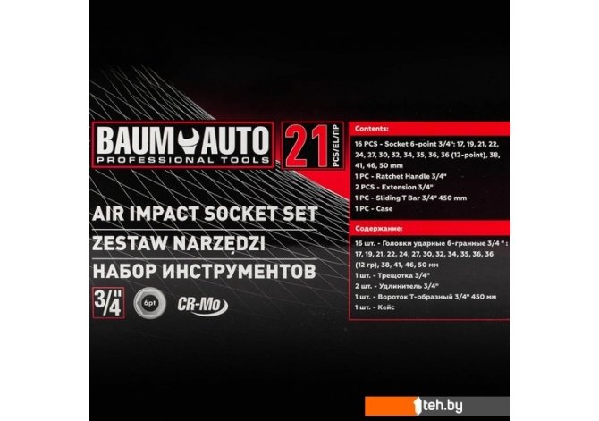 Если хотите купить набор инструментов BaumAuto BM-6212-5MPB (21 предмет) то следует уточнить все параметры и габариты модели перед покупкой. Представленые характеристики на сайте 1teh.by могут отличаться от действительных или указанных производителем. Описание, фото товара и технические характеристики представлены для справки.