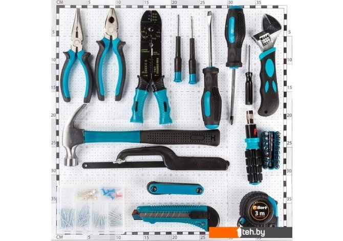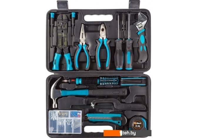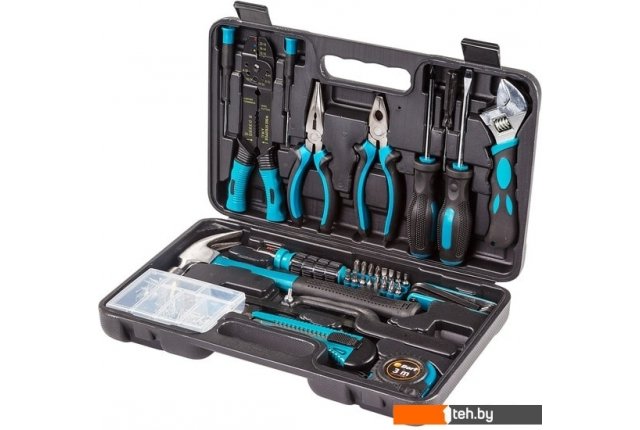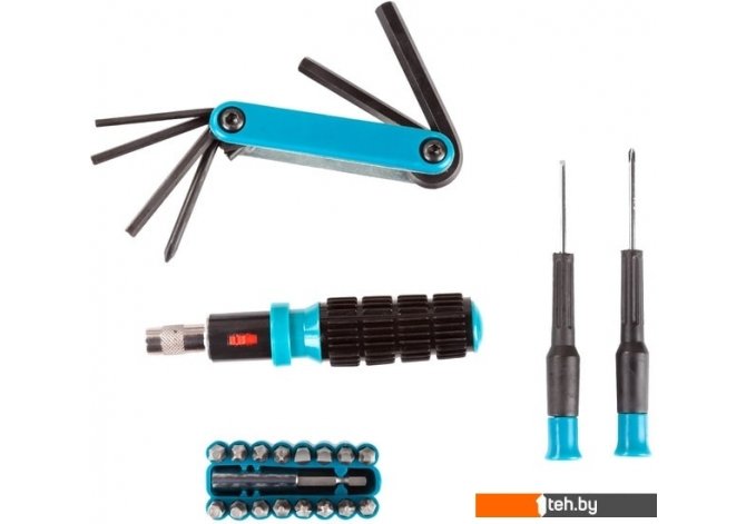 Комплектация | Бита 25 мм 16шт (SL3, SL4, SL5, SL6, PH1, PH2, PH3, PH4, PZ1, PZ2, PZ3, PZ4, H2, H3, H4, H5)ДлинногубцыКлещи для зачистки и обжима проводовКлюч разводнойКлюч шестигранный 6шт (3; 4; 5; 6; 8, PH1)Магнитный держательМини-отвертка 50mm (PH1)МолотокНожНожовкаОрганайзер с крепежомОтвертка-держатель для битОтвертка 100мм 2шт (PH2, SL6)ПлоскогубцыРулетка измерительная 3мЧасовая отвертка 40 мм 2 шт (PH1, SL3) |
