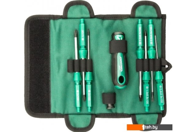 | Комплектация | - Стержни отверточные 7 шт.: SL2.5x100 мм, SL4х100 мм, SL5.5х100 мм, SL6.5х100 мм, PH0х100 мм, PH1х100 мм, PH2х100 мм - Рукоятка отверточная - Втулка пластиковая - Сумка-чехол |