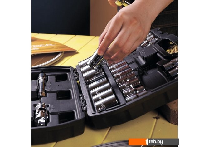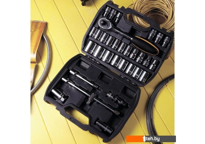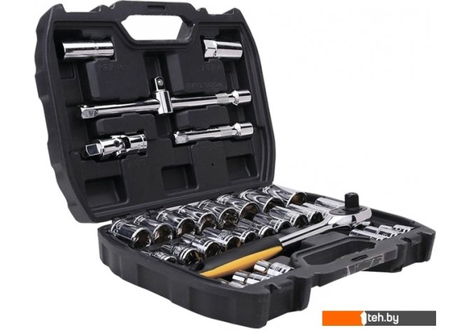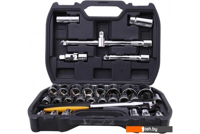 | Комплектация | - Ключ-трещотка 1/2" - Универсальный шарнир - Удлинитель 1/2" (5", 10") - 1/2" 3-ходовое скользящее соединение - 1/2" свечная головка: 16, 21 мм - Головки: 8, 9, 10, 11, 12, 13, 14, 15, 16, 17, 18, 19, 20, 21, 22, 24, 27, 30, 32 мм - 12-гранные торцевые головки: 10, 12, 14, 15, 17, 19 мм - Пластиковый кейс |