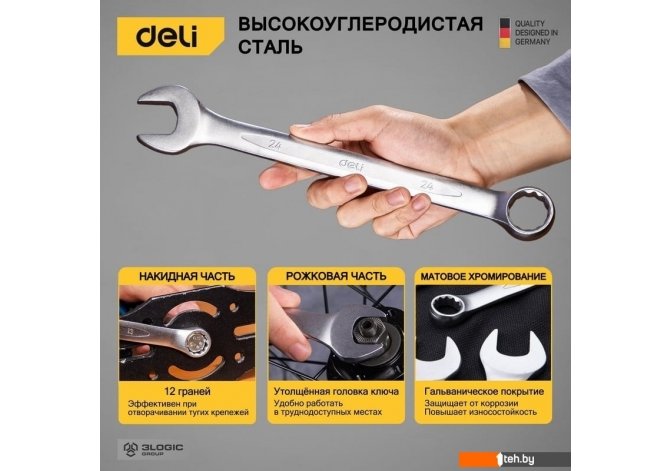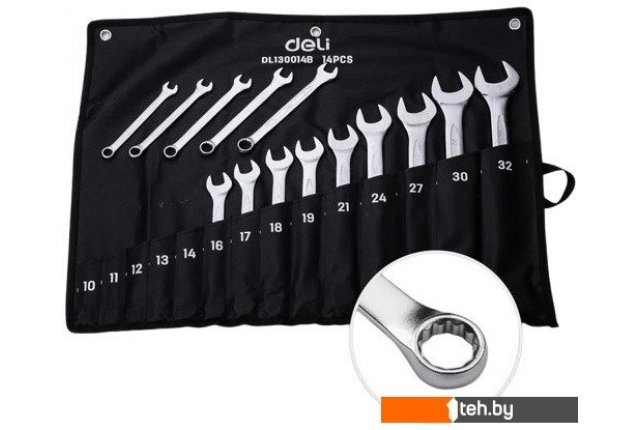 | Информация | Комбинированный гаечный ключ - это универсальный инструмент, который сочетает в себе две функции: обычного гаечного ключа и накидного. Он предназначен для крепления и откручивания гаек и болтов различного диаметра в различных областях, таких как автомобильный ремонт, строительство и механические работы. Набор комбинированных гаечных ключей DeliDL130014Bвключает в себя 14 ключей самый востребованных размеров: 10мм, 11мм, 12мм, 13мм, 14мм, 16мм, 17мм, 18мм, 19мм, 21мм, 24мм, 27мм, 30мм, 32мм Одна сторона выполнена в виде классического рожкового ключа, а на другой стороне расположена головка с двенадцатью гранями определенного размера, которая соответствует шестиугольному профилю гайки или болта. Это позволяет надежно и плотно зафиксировать гайку или болт, чтобы обеспечить максимальную силу при повороте. Ключи изготовлены из прочной и качественной углеродистой стали и поставляются в комплекте с удобной сумкой из прочной ткани Oxford. Сумка-чехол оснащена двумя металлическими сквозными кольцами для возможности повесить её на стену в разложенном виде. Каждый ключ имеет индивидуальное подписанное место в сумке, что позволит быстро подобрать нужный инструмент и ключи не потеряются. Основное преимущество накидного гаечного ключа - его универсальность. Благодаря наличию различных размеров головок, он может применяться для работы с гайками и болтами разных диаметров. Это позволяет сэкономить время и усилия при выполнении задач в различных областях. |