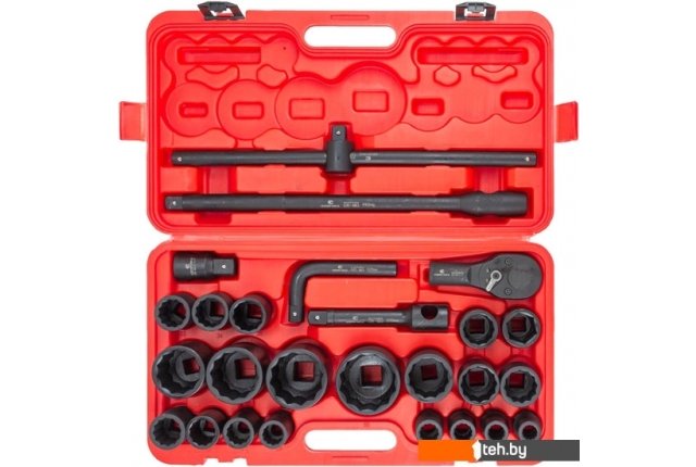 | Комплектация | головки ударные 12-гранные 3/4": 17, 19, 21, 22, 24, 27, 30, 32, 33, 34, 35, 36, 36 (6-гранная), 38, 41, 46, 50 мм; головки ударные 12-гранные 1": 55, 60, 65 мм. |