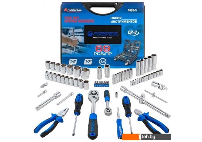 Если хотите купить набор инструментов FORSAGE F-4603-5 (69 предметов) то следует уточнить все параметры и габариты модели перед покупкой. Представленые характеристики на сайте 1teh.by могут отличаться от действительных или указанных производителем. Описание, фото товара и технические характеристики представлены для справки.