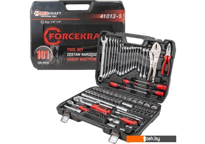 Фотографии, описание и технические характеристики модели набора ForceKraft FK-41013-5 (101 предмет) взяты из открытых источников, официального сайта производителя или представительства ForceKraft в Республике Беларусь.